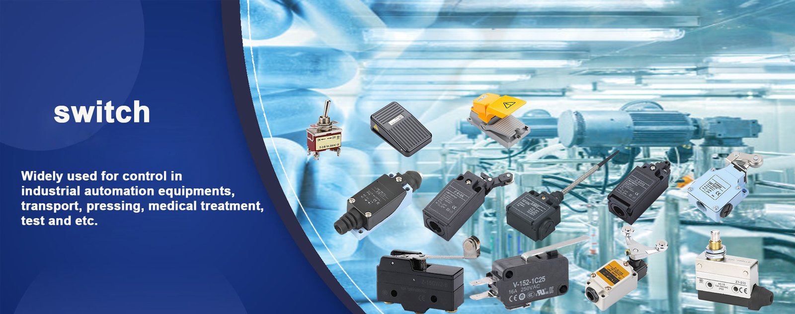 Inventory includes, micro switches, limit switches, travel switches, foot switches, toggle switches.