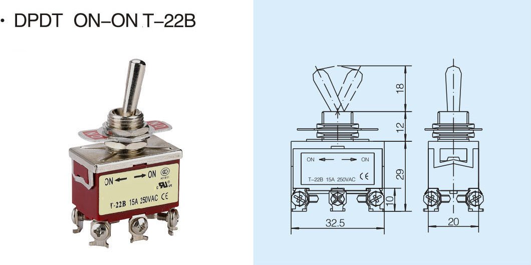 Double pole double throw type Toggle switch: