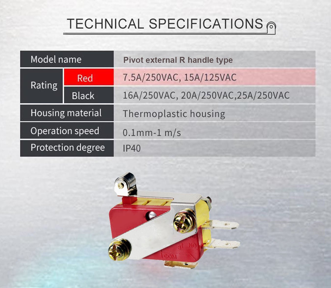 Pivot external R handle type Micro Switch: