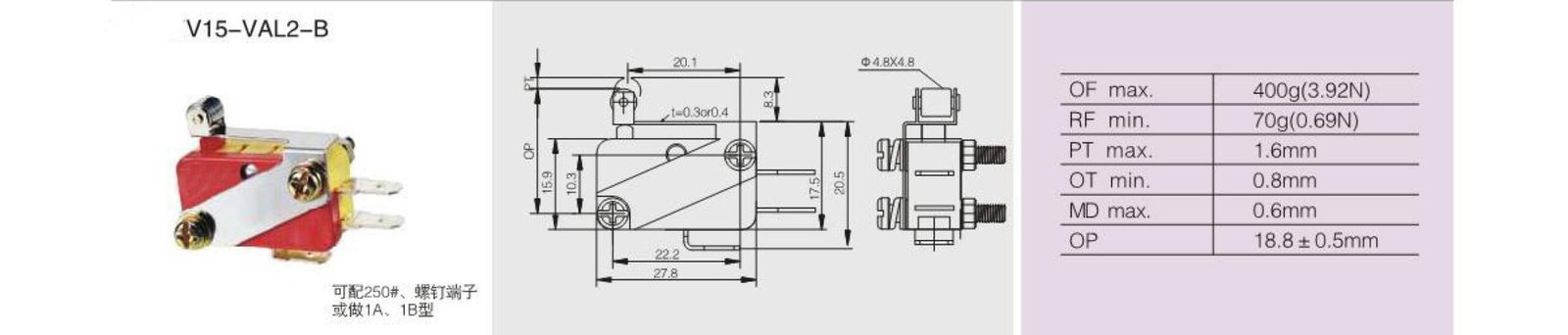 | Opearting force | 25g(0.245N)-400g(3.92N) |