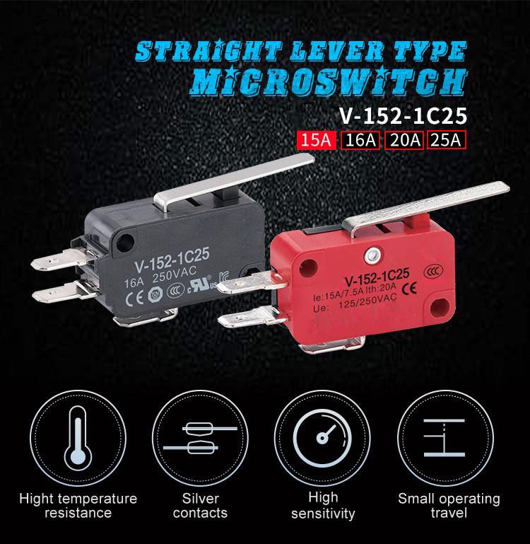 the switching action with a specified stroke and a specified force. Small, hence the name micro switch, also called sensitive switch.